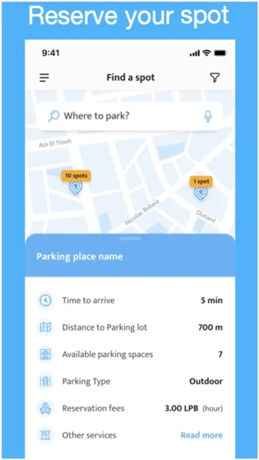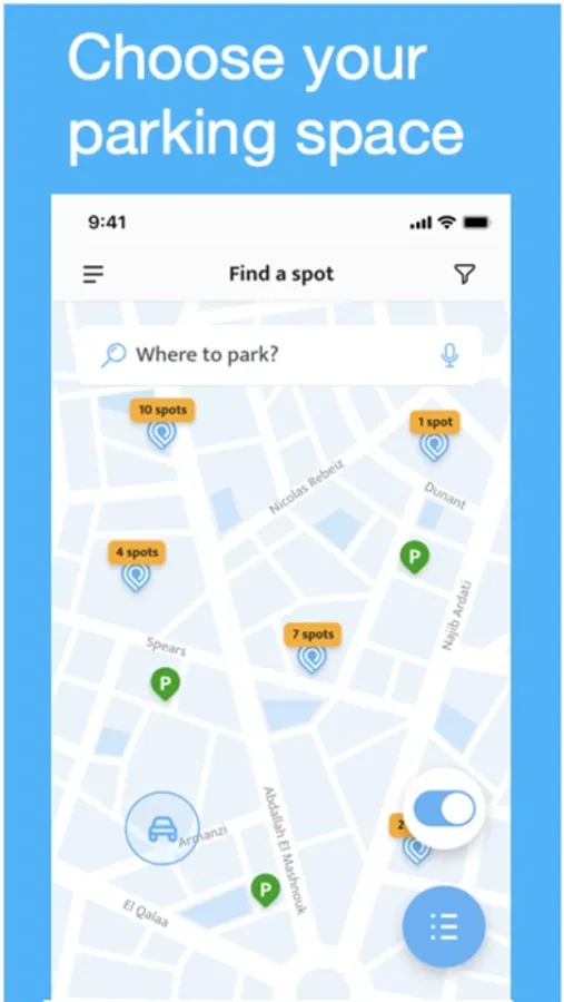 Just open the app, and you can see all the nearby available parking spaces. Or enter where you want to go, to find all the available spaces near your destination. With one click, you can find a space .. on-demand.