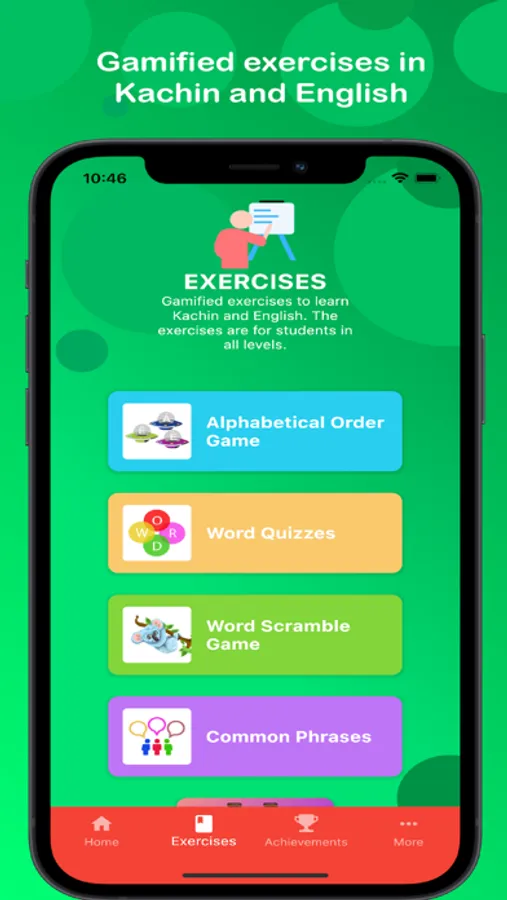 Kachin-English dictionary and gamified exercises to learn Kachin and English. Support iOS 9.0+, iPhone, iPod touch and iPad.