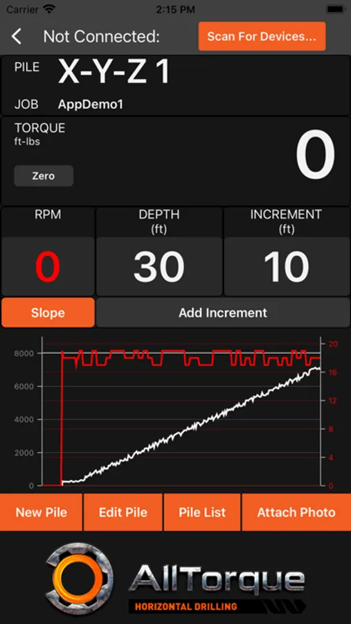 AllTorque Horizontal Drilling connects to sensors from AllTorque Control Systems and Allweigh Scale Systems Inc. It is used in horizontal drilling and screw piling applications to manage jobs, generate reports and store sensor data locally and in the cloud.
