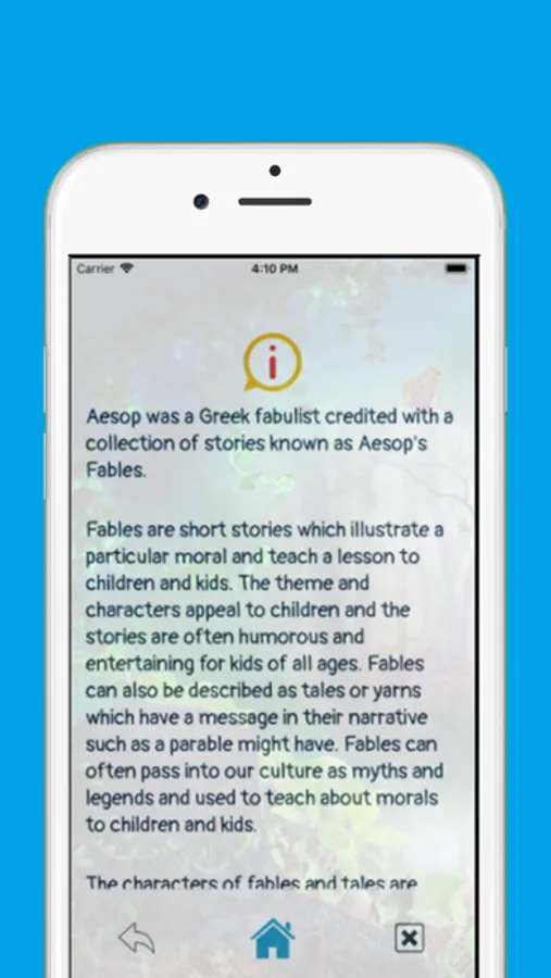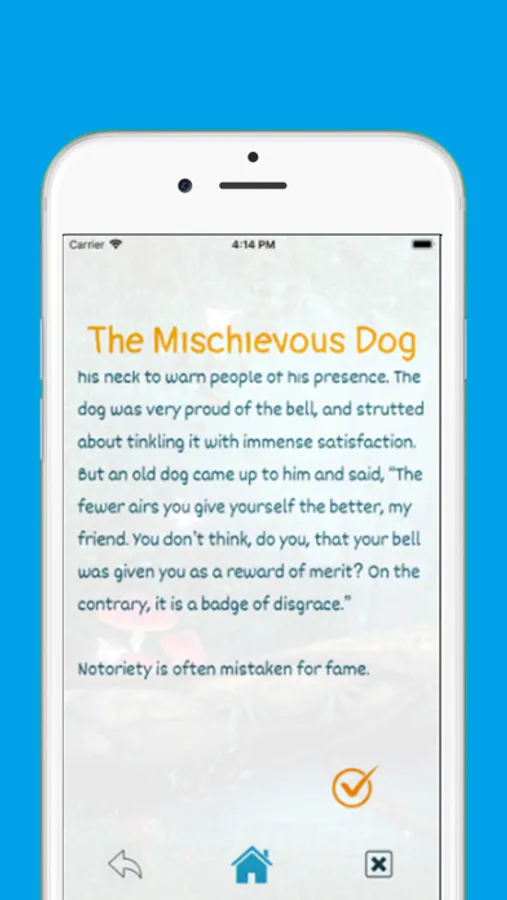 The application allows you to mark the tales you have read. That way, if children are reading Aesop's Fables alone, you can follow them. But we recommend that you tell the stories to your children. This helps you communicate with your child. It also helps you explain her/his mistakes in a more accurate language. All you have to do is choose a Aesop's Fables and talk to your child about it.