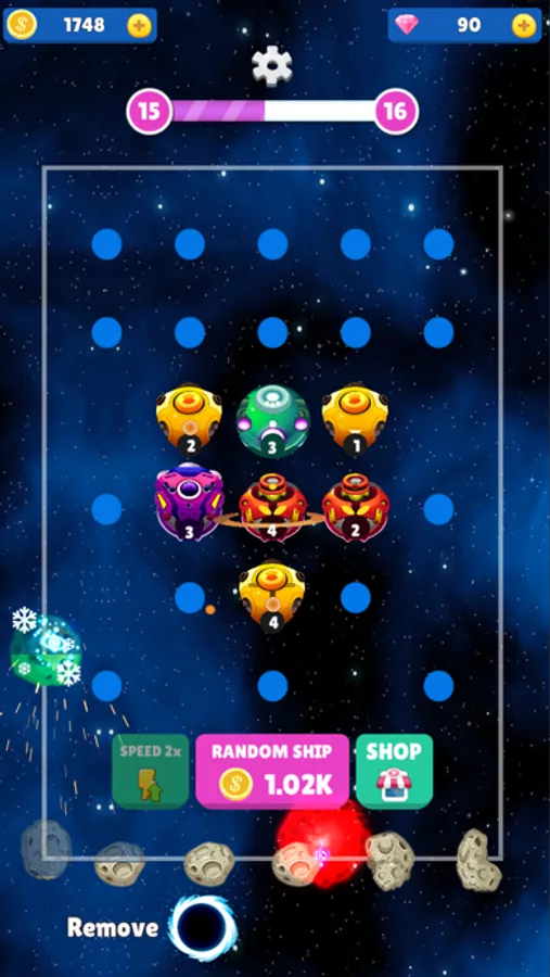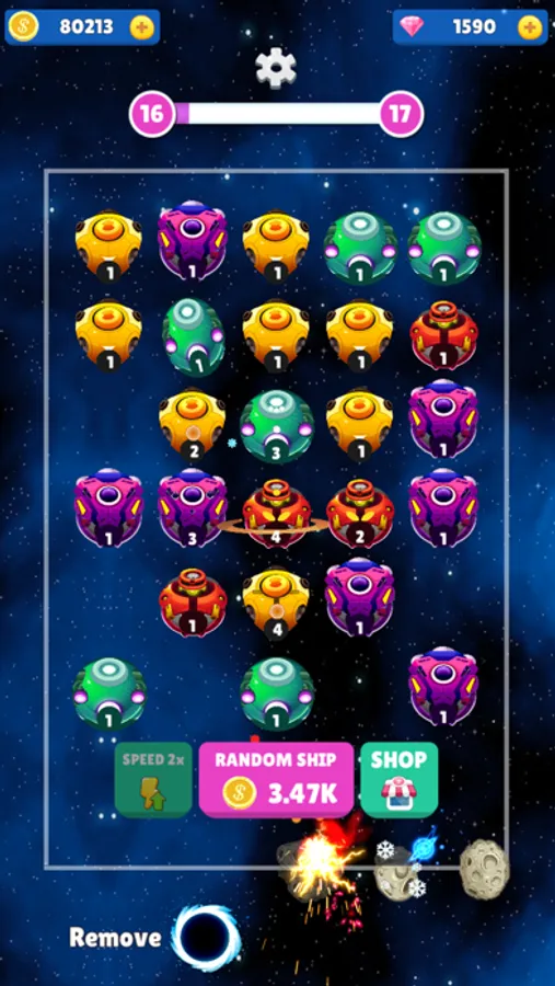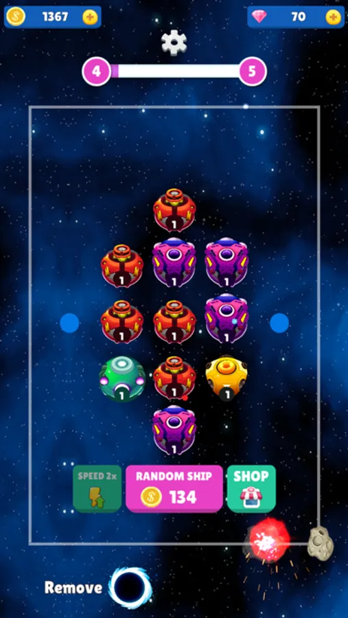 Merge the spaceships to improve their power, Collect millions of coins to buy new spaceships, destroy thousands of comets and reach higher levels.