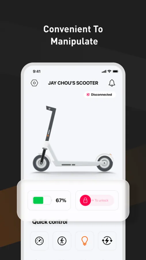 Vehicle settings: light effects, speed mode, Third level Energy recovery setting, Bluetooth remote control