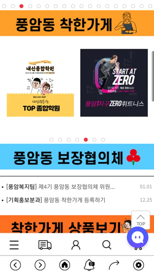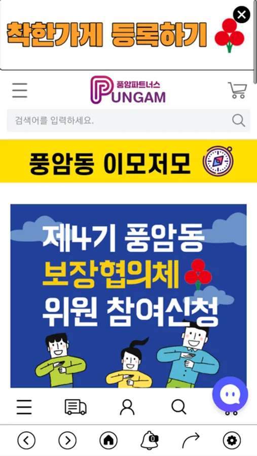 광주광역시 서구 풍암동 지역사회보장협의체 주도로 착한가게들과 풍암동주민들 모두 상생할 수 있도록 o2o 언택트 시스템이 기반이 되는 생활밀착형 복지 커뮤니티 쇼핑몰입니다.