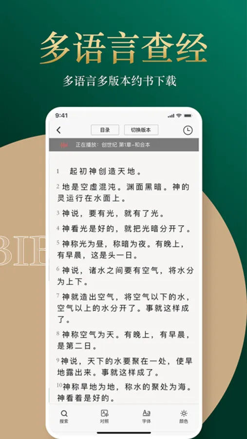 基督徒圣经软件 为您提供多语种、多版本的圣经,希望能帮助您更好地阅读、聆听、查考和默想上帝的话语,养成每日读经和灵修的好习惯。您还可以边读圣经边做笔记,并且借助我们的云端功能,将笔记内容同步到不同的设备中。完全围绕圣经进行功能扩展的软件,为了帮助大家更好的查考圣经而开发的软件。基本功能如下: