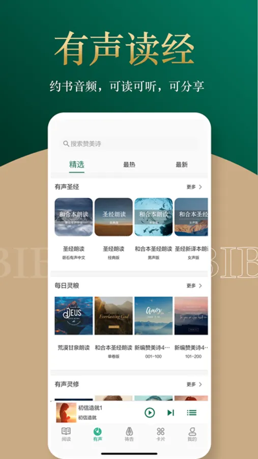 3、语音圣经:贴心的语音圣经工具条,可很方便的随点随听,自动缓存语音文件,方便离线听