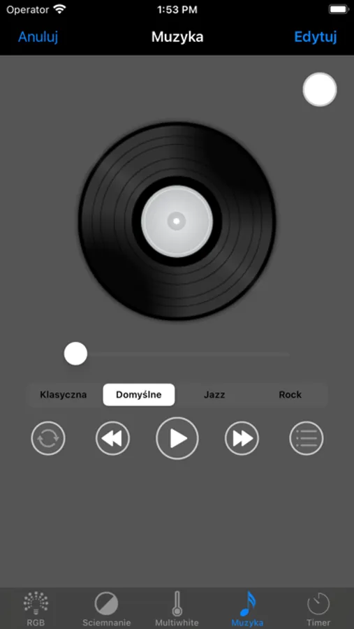 Dodatkowo wbudowana funkcja aplikacji pozwala na dynamiczne sterowanie oświetleniem w połączeniu z muzyką tworząc dynamiczne efekty świetlne zsynchronizowane z dźwiękami otoczenia.