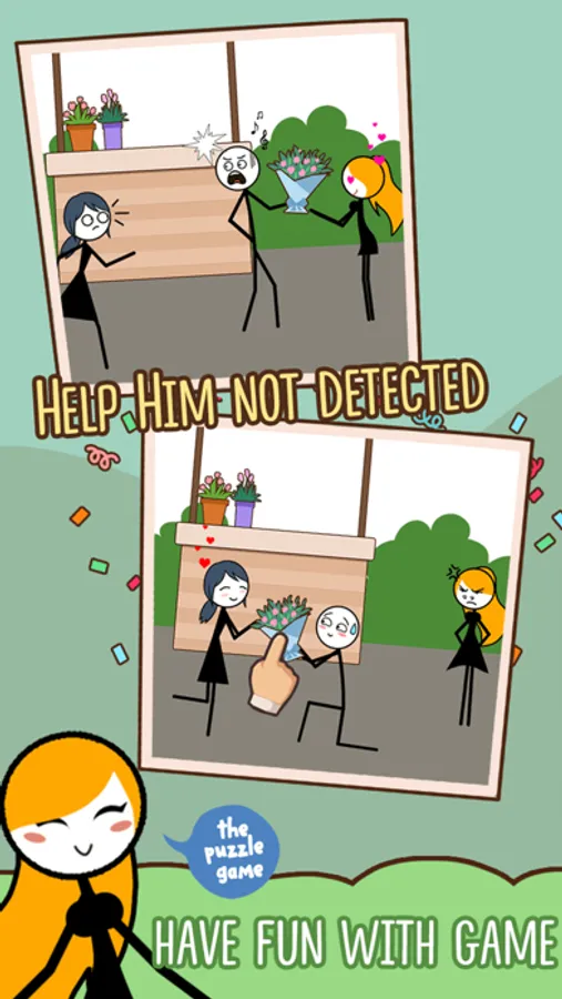 - The levels using stickman images are close to life and very funny, help him with his love.