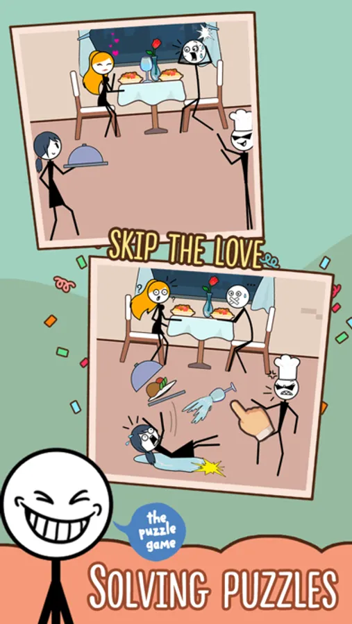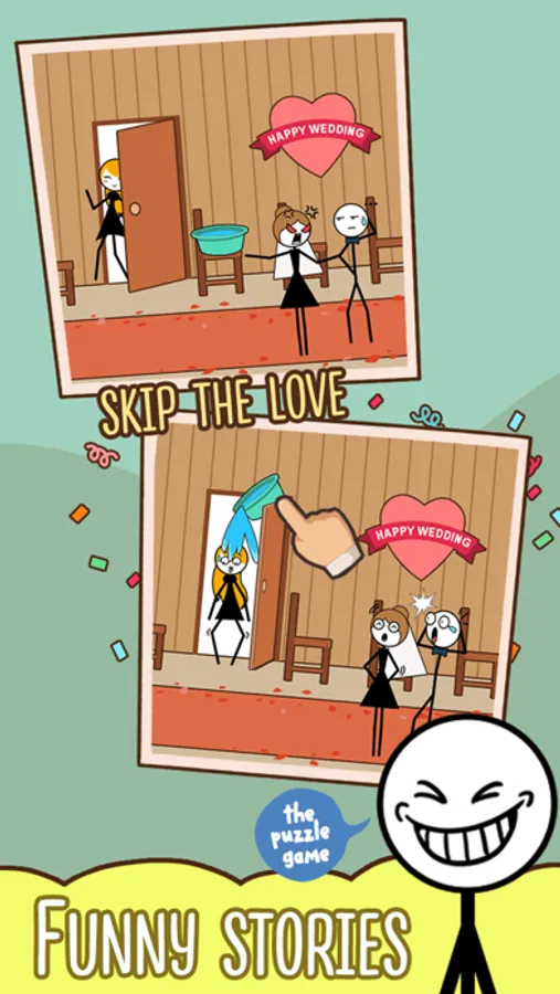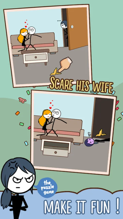 Skip Love is an innovative puzzle game, a combination of puzzle and fun, extremely smart and challenging, the game will bring you a radiant facial joy to the situations in the game. Think and use your brain to overcome each challenge, helping the man overcome his sexy wife and lover.