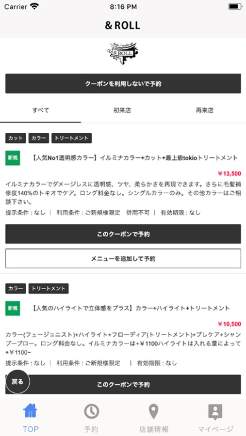 お得なクーポンが配信されます。ネット予約時にクーポン利用での予約も可能なので来店時もスムーズに施術頂けます。
