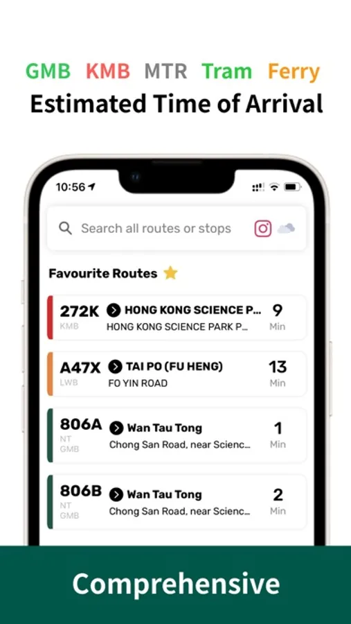 *Currently the ETA covers KMB, GMB, CityBus, NWFB, NLB, MTR, MTR Bus, Light Rail, Tram, Ferry & Cable car