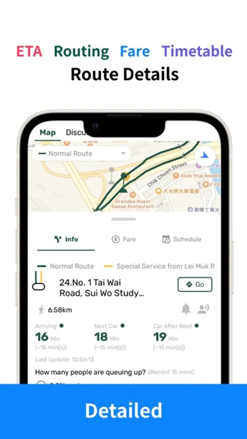 It is challenging for the users to select the specific routing from a sea of routes. In light of that, EasyTransit provides a brand new Metro-like graph for the user to easily identify the routing of the upcoming buses without a hassle.