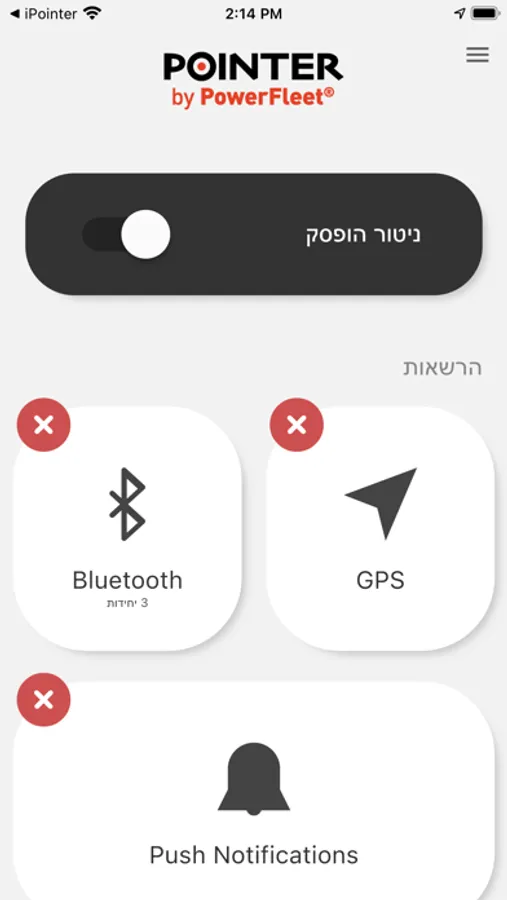 שליחת מיקומים מהמכשיר הנייד והצגה במערכת הניהול צי , כולל מסך גילוי חיישנים