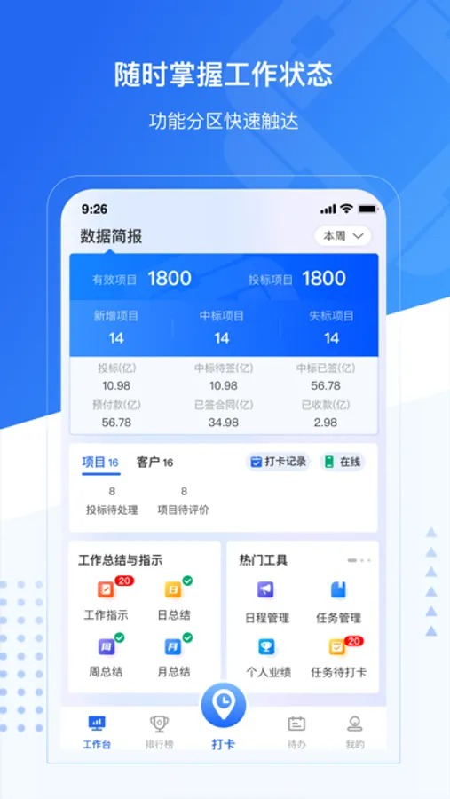 杭萧crm App包含客户管理、项目管理、办公等内容,是一款便捷的公司办公软件