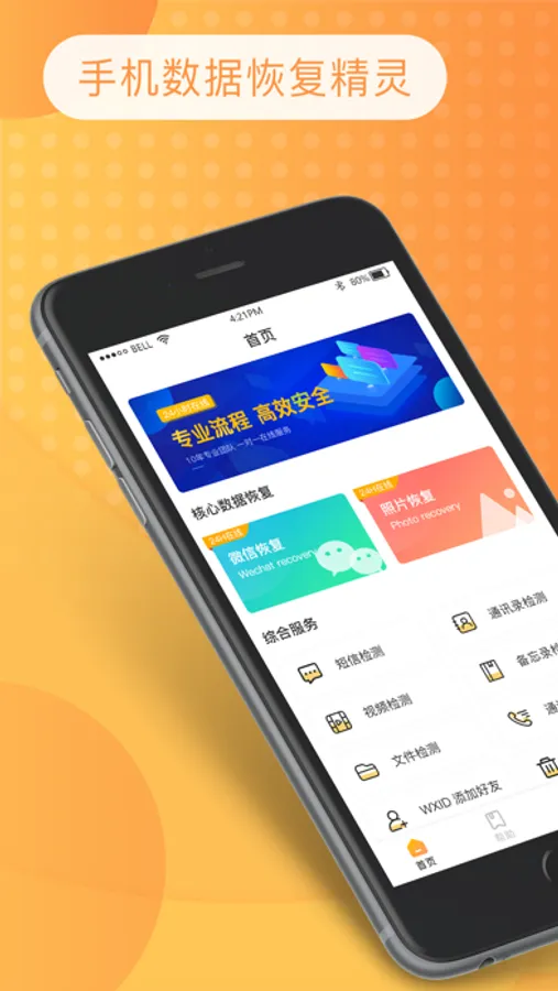 手机数据恢复精灵是一款为手机数据处理打造的服务平台,在不断的技术累计及对手机系统的研究下,当前支持微信好友、微信消息、手机通讯录、手机通话记录、手机照片/视频、手机短信、QQ好友、QQ消息、等手机数据找回,同时针对敏感信息也提供彻底清除服务。