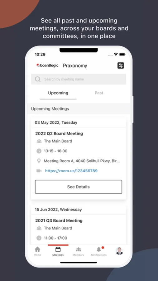 Retrieve the content or minutes of a past meeting at any time. Have access to full board documents and records at your fingertips.