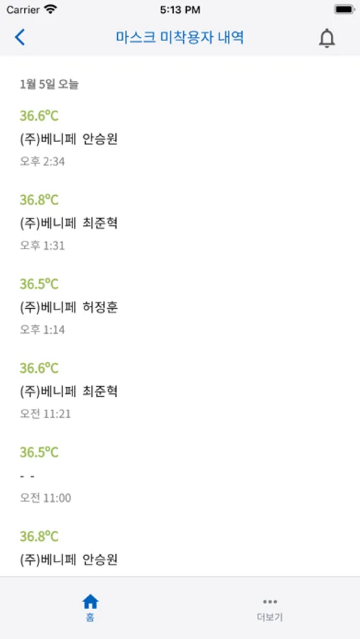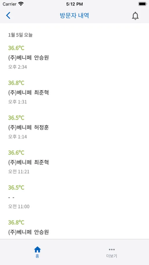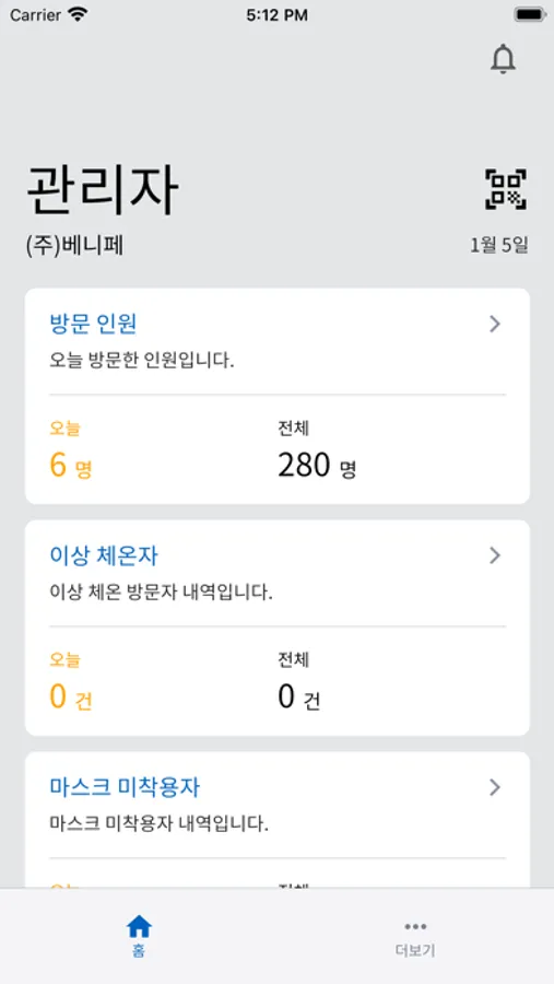 인공지능 열화상 출입 시스템 관리자 앱으로 출입 통계내역을 제공합니다.