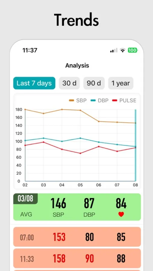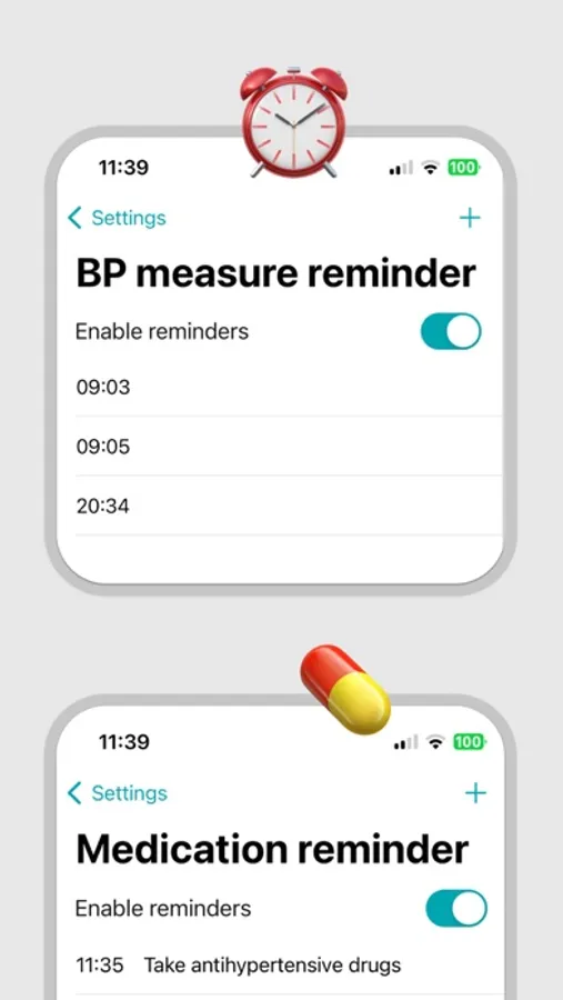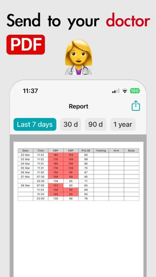 * Quickly generate blood pressure report and easily share it with your doctor (PDF)