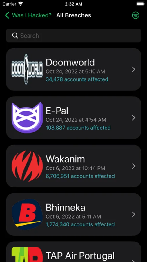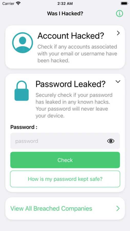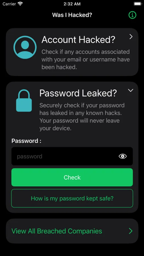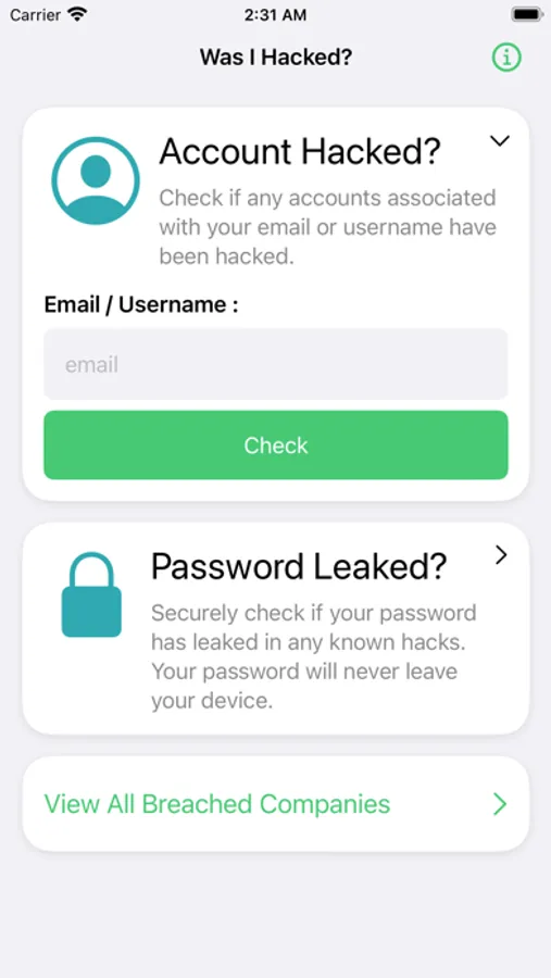 "Was I Hacked?" gives you a portal to the trusted data from Have I Been Pwned in a beautiful and easy to use interface that is always available in your pocket.