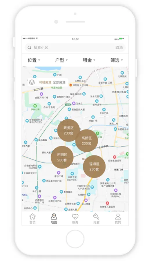 合房租赁,国企实力,帮助市民找到适合自己的房屋,强大的在线签约功能,带给用户满意的租房体验。