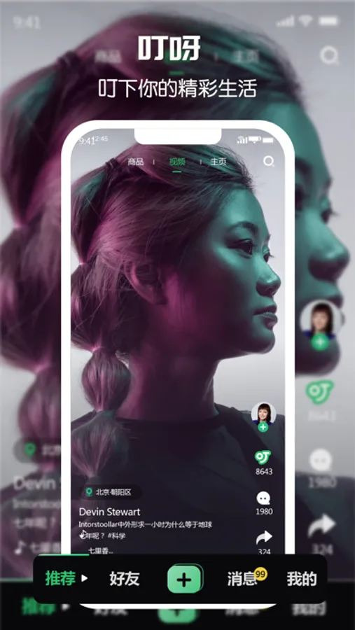 叮呀是一款本地综合服务短视频软件,是一个开启本地优质精彩生活的短视频社区。用户可以拍摄短视频,剪辑视频、记录生活分享创作,结交本地朋友,拓展本地圈子,了解本地趣味便利资讯。 享受更优秀的品质。拍摄一个短视频,随手记录的你的美好,让整个城市都为你的精彩点赞。