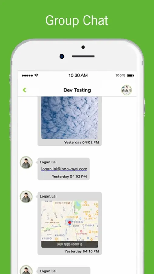 Our Instant messaging application functions within the system it is registered with so that users can communicate securely without the risk of their texts, voice messages, or shared images being captured on a device and shared externally. Groups are created on a project by project basis with flexible controls over user access to the group chat. Direct user to user chat is also allowed, as well as standard profile management.