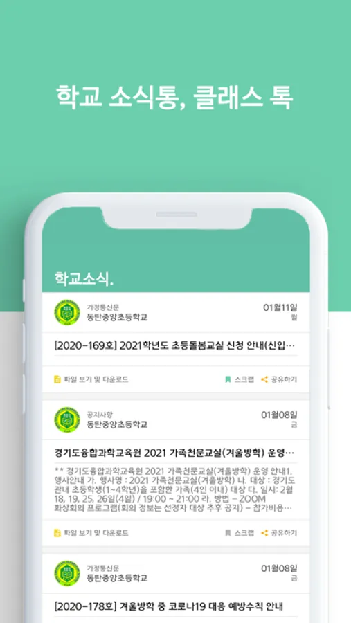 - 가정통신문을 뷰어로 보거나 다운로드 할 수 있습니다.
