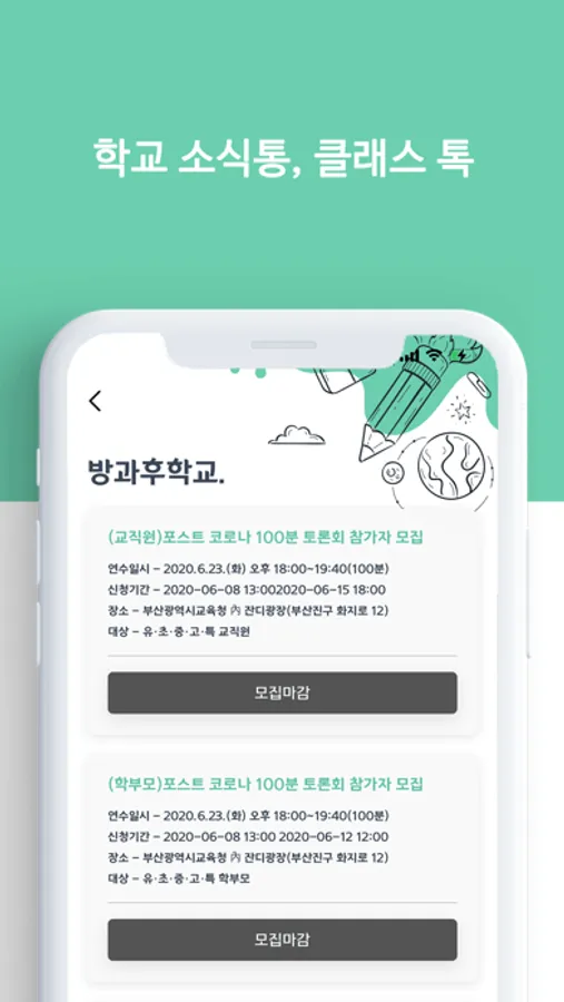 - 각 학교에서 주관하는 방과후 수업에 대한 상세 정보 및 신청이 가능합니다.