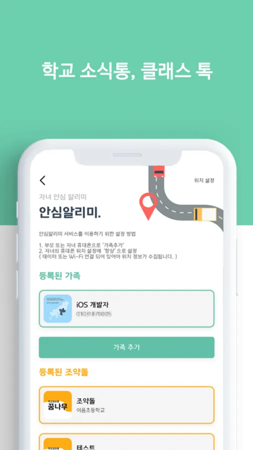 - 자녀의 위치 정보 조회와 조약돌(비콘)의 정보를 알 수 있습니다.