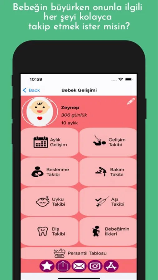 Bu uygulamayı kullanarak bebeğinizin ay ay gelişimini takip edebilirsiniz.