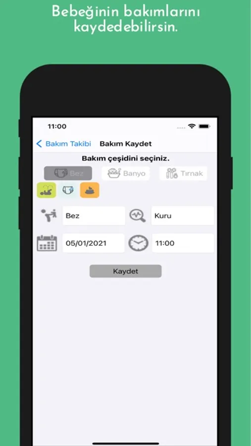 Bez değişim ve banyo takibi,