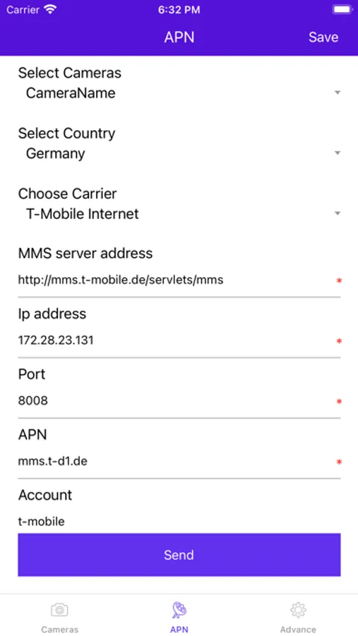This APP can help you to set the related datas such as operators' data, SMTP sever ,FTP URL and the receving phone number or Email address you need.
