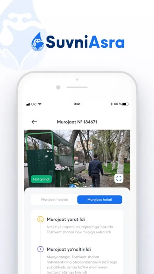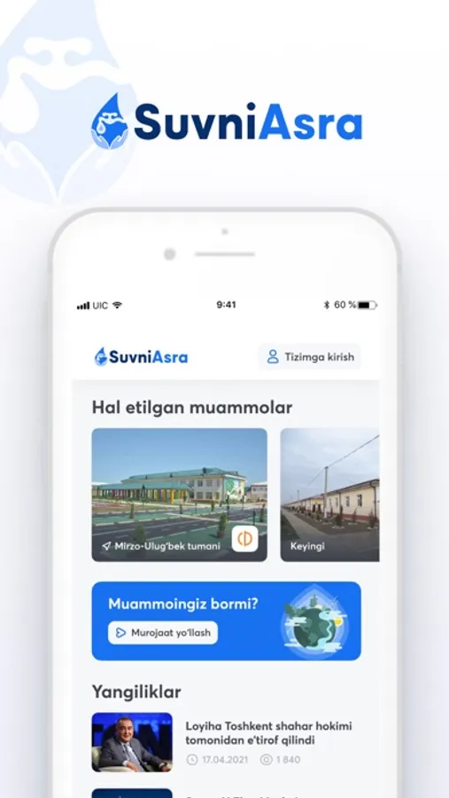 Siz suv muammosini bizga yuborish orqali o‘z fuqarolik pozitsiyangizni bildirish bilan birga jamoatchilik nazoratini ham o‘rnatasiz.