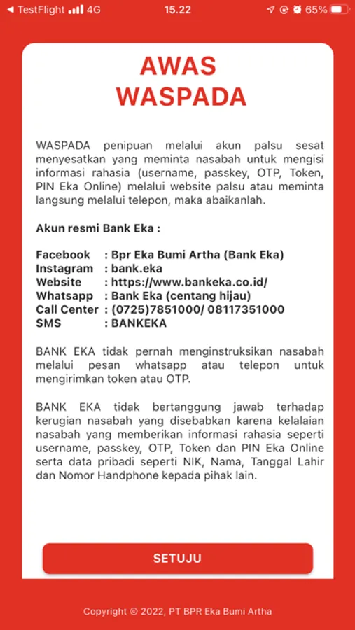 Untuk informasi lebih lanjut, silakan menghubungi Bank Eka melalui Call Center 0725 7851000 dan 0811 7351000 atau email ke pengaduan.nasabah@bankeka.co.id.