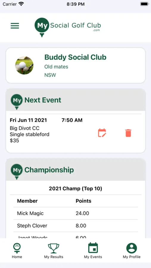My Social Golf Club simplifies the hassle of managing a social golf club. Easily keep your members informed about events and results. Social Golf Club admins can edit handicaps or even better, setup auto handicapping!