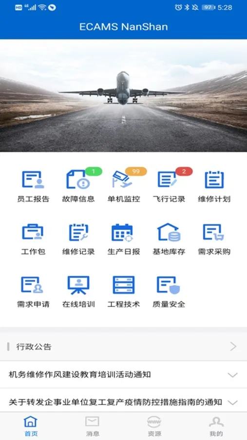 ECAMs NanShan,是通航智维专为企业打造的一个工作协同、智能移动办公平台,帮助通航企业降低沟通、协同、管理成本,提升办公效率,实现数字化新工作方式。