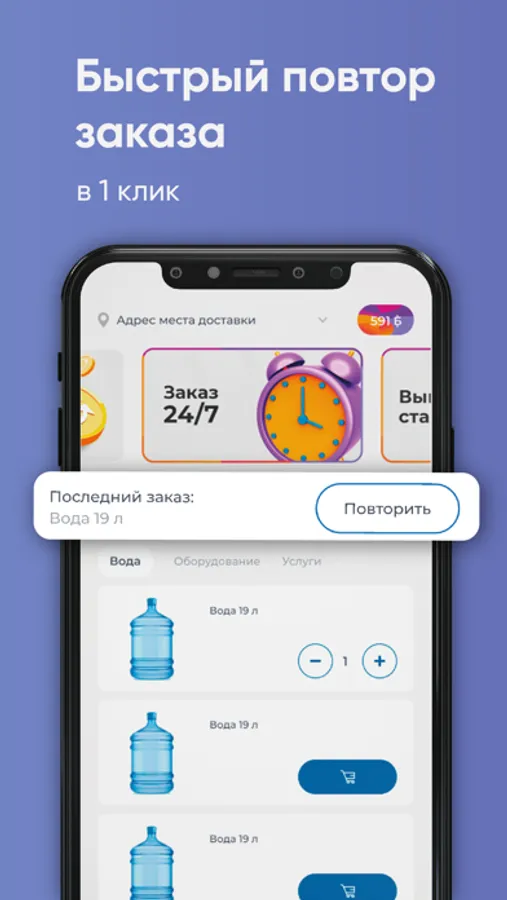 Скачайте бесплатное приложение на телефон и заказывайте чистую воду в удобное время!
