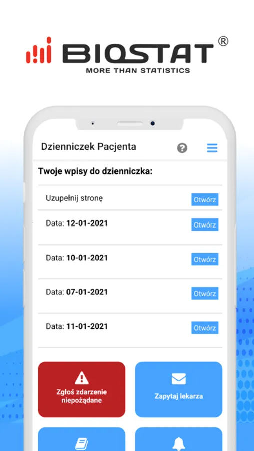 Dzienniczek Pacjenta to aplikacja umożliwiająca dwustronną komunikację uczestników badania z użytkownikami systemu eCRF. Dostęp do aplikacji jest możliwy z dowolnego miejsca i w dowolnym czasie. Dzienniczek pacjenta pozwala na lepszą komunikację z lekarzem podczas badań klinicznych.