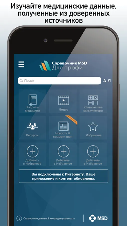 Ниже приведены возможности, которые дает вам зарекомендовавшее себя медицинское приложение, содержащее профессиональную версию Справочника MSD: