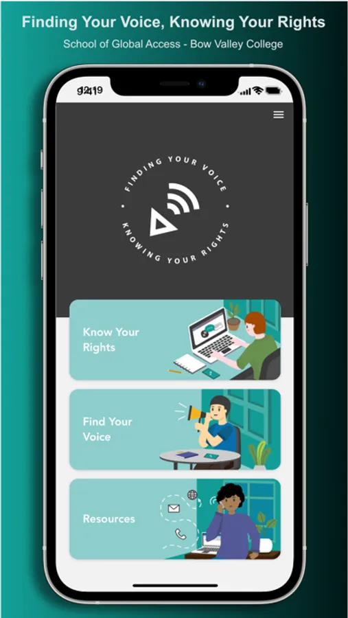 Finding Your Voice, Knowing Your Rights was created by The School of Global Access at Bow Valley College. The School of Global Access is focused on newcomer settlement through language classes, skills development, career placement, and research.