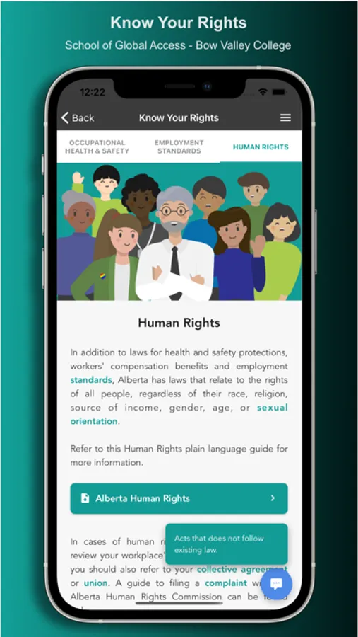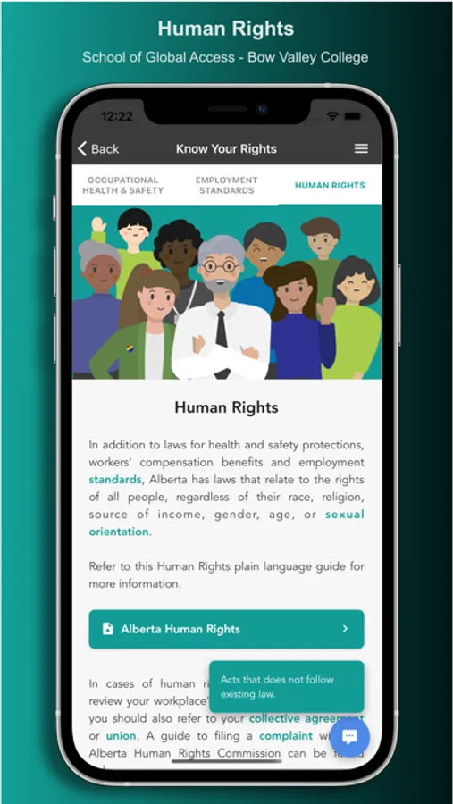 This app is for young newcomer workers in Alberta, yet many others will find it useful. You will find information on how to experience safe and fair workplaces. This includes information and resources related to Occupational Health and Safety and Employment Standards in Alberta. This app will not ask for any information or store any of your data.