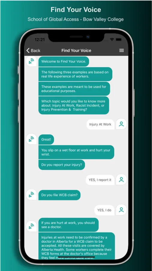 Find Your Voice: Go through three workplace examples to learn about safety at work. This includes training, workplace discrimination, and injuries at work.