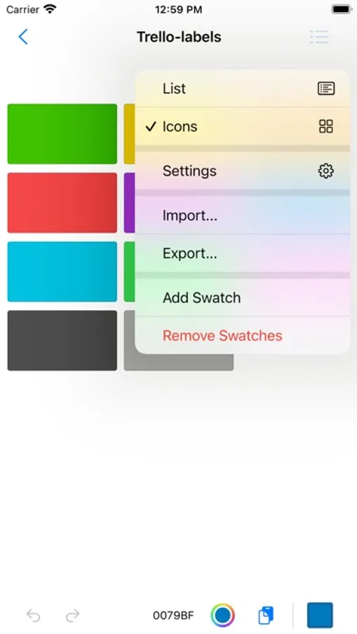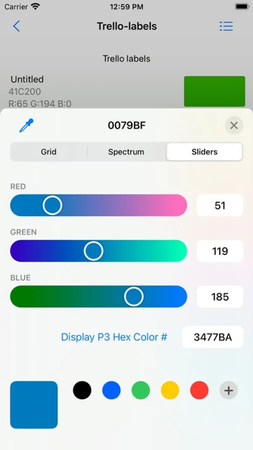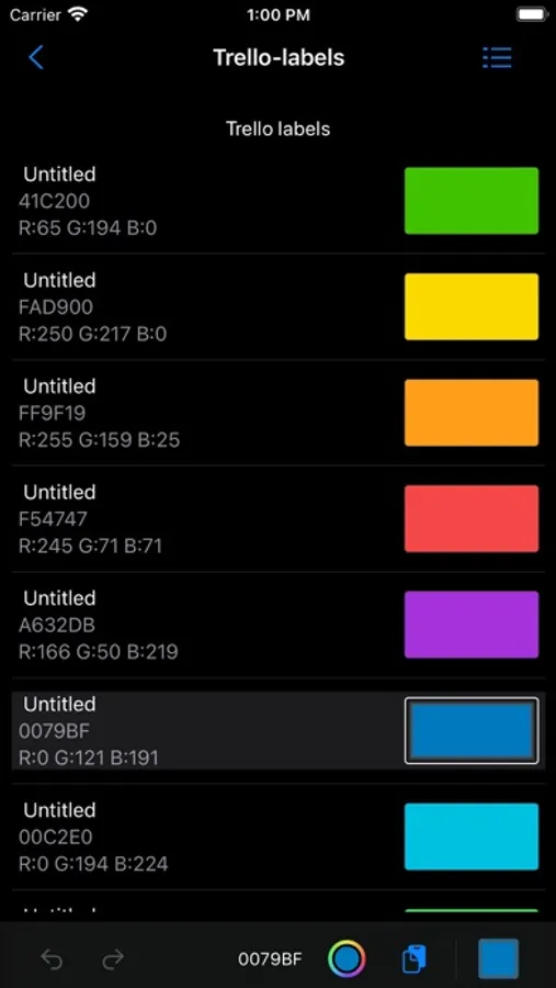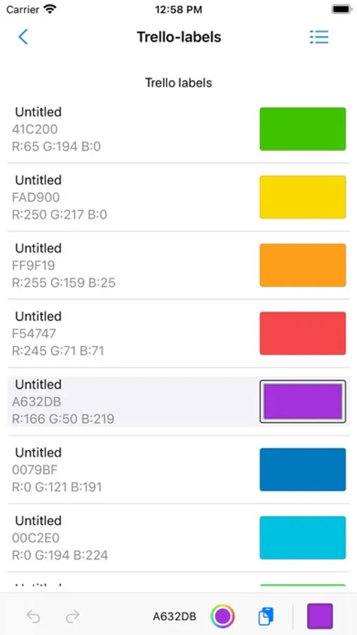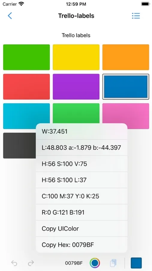 Color palettes management tool based on a GIMP format ( *.gpl ). Selected color can be changed by system's color picker or copied to clipboard as a UIColor or hex string or RGB description. You can grab color from any place on the screen. Auto extract main colors from the given image.