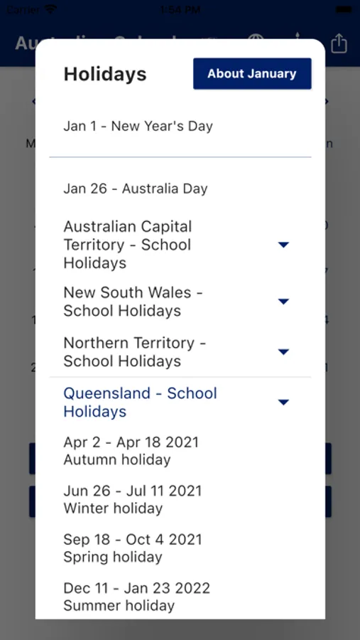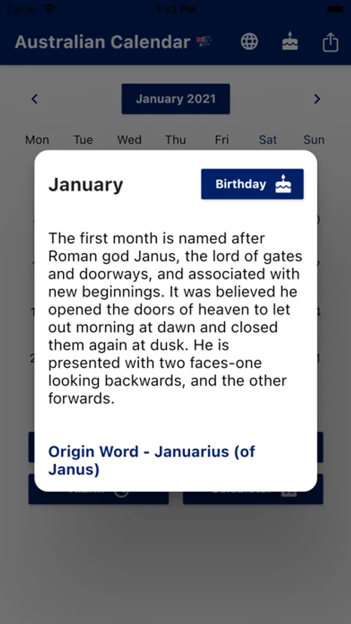 Australian Holidays & Birthday Reminder, Events, Month History, School Holidays 2020/2021