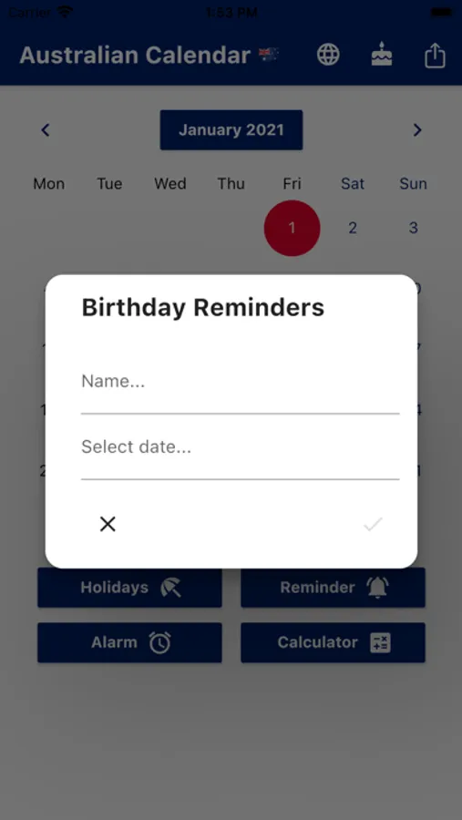 - Reminder of the upcoming Australian holidays, birthdays and important events