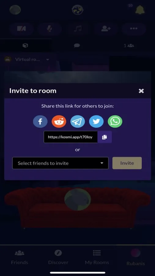 Kosmi is your entertainment universe, bringing together your favorite TV, movies, games, music, and other apps, all in one place. Hang out in one of your rooms, invite your friends, and see who shows up.