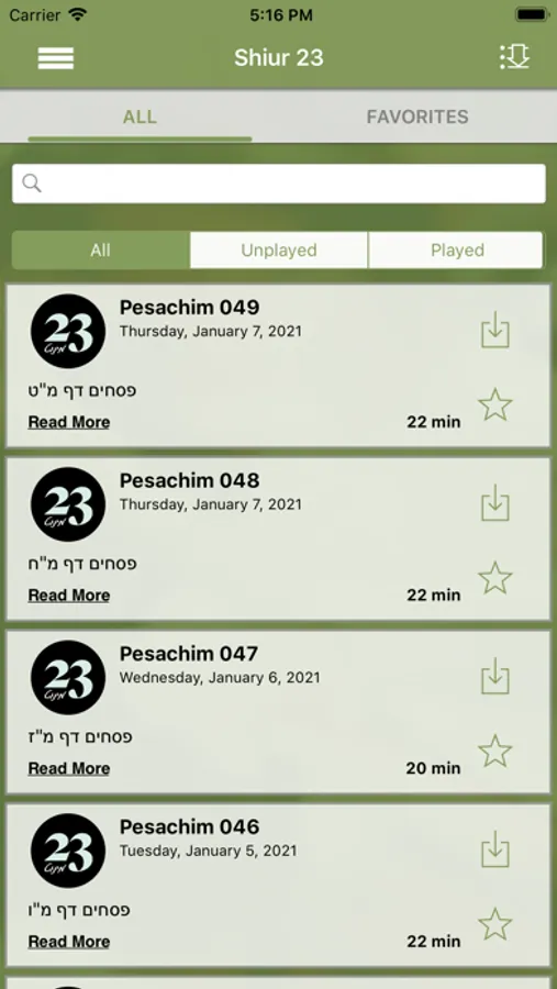 * Select unplayed Shiurim