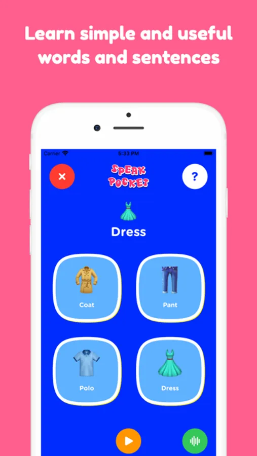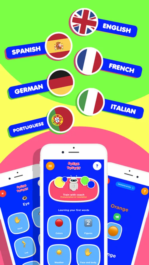 Speak Pocket is the easy application for learning your first words and phrases in English, Spanish, French, German, Italian or even Portuguese.