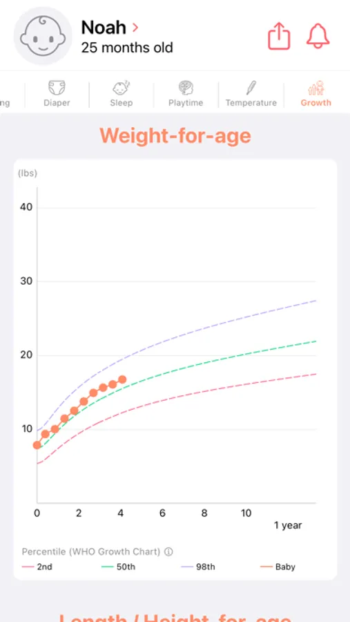 * whether your baby have a healthy growth rate compare against children of the same age on WHO’s International Growth Chart.