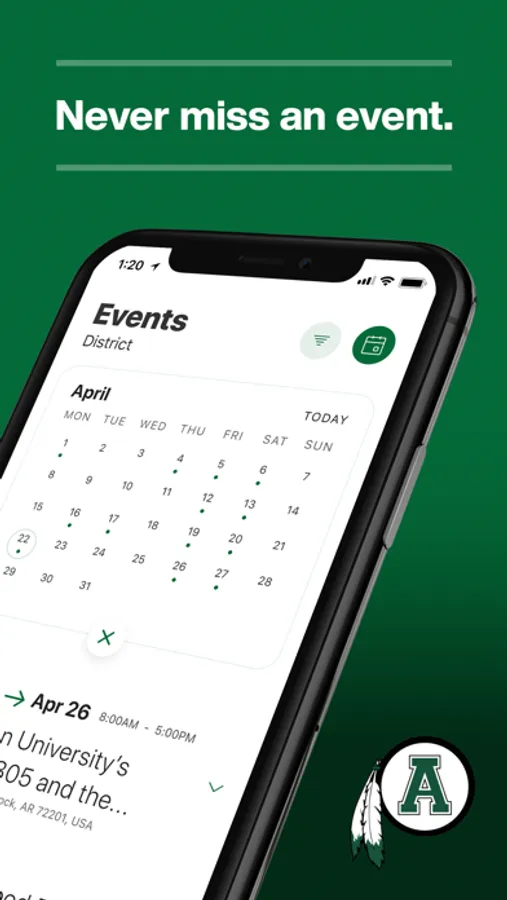 The event section shows a list of events throughout the district. Users can add an event to your calendar to share the event with friends and family with one tap.