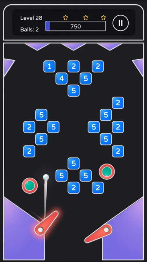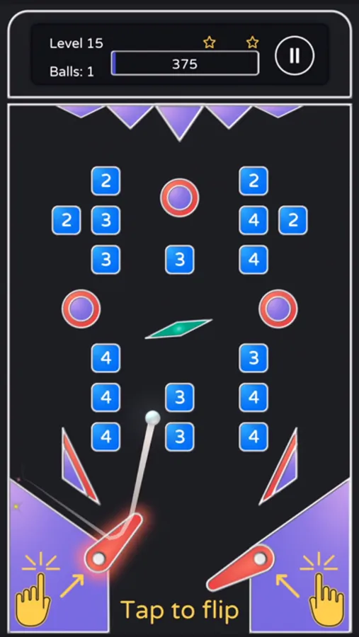 • Use the left and right flippers to shoot the ball and break all the blocks to complete each level.
